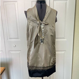 Vera Wang Champagne Satin and Sequin Shift Dress with Beading • Size 6 🗣
