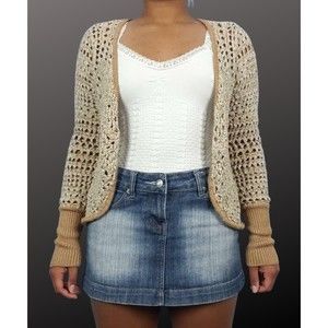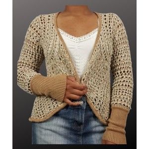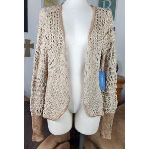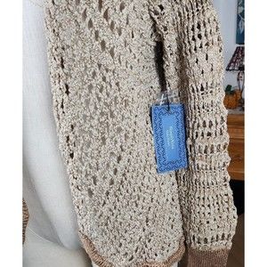 Vera Wang Crochet Beige Open Front Cardigan Knit Ribbed Wrist XL NEW!