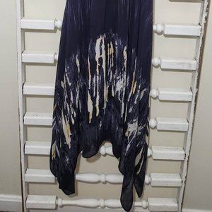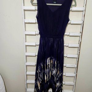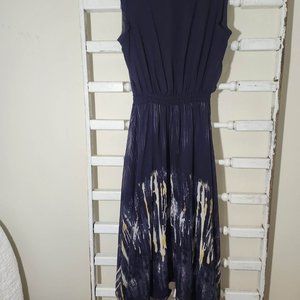 Description: This dress flows beautifully and is perfect for any occasion. The elastic waist makes it extremely comfortable. It has only been worn once and that one wear resulted in endless complements. This dress fits like a size 4.