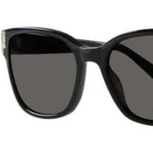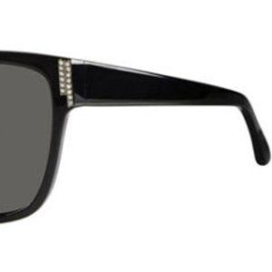 Farah by Vera Wang is a timeless square sunglass design with a dash of formal sophistication. The handmade acetate frame features a black finish highlighted by Swarovski crystal motifs at rim corners. Fitted with grey lenses that provide 100% protection from harmful UV.