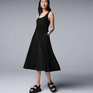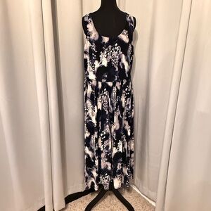 It is multicolored: purple, grey, and white. I would style with a jean jacket and chunky necklace. Super comfortable and has POCKETS.
