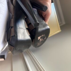 Never worn. These are dark brown with the most fabulous strap and buckle detail. Can be transition heels into fall. 4.5” heel with 1” platform. Boss lady style!