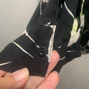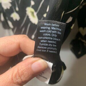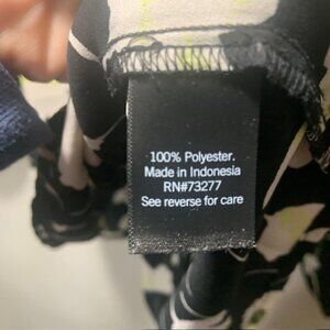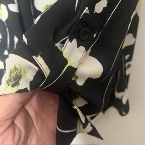 A versatile and flattering top from the Simply Vera Vera Wang collection. The classic black background is set off by a gorgeous cream/white, sprinkles of green floral pattern. Perfect for pairing with work slacks, jeans, or layering under a blazer!