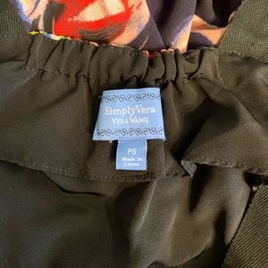 Simply Vera by Vera Wang floral sleeveless dress, Size Petite Small. Sheer navy abstract floral overlay with black inner lining. Wide twill straps and elastic along the back for comfort. Dry clean.