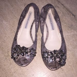 Vera Wang Gorgeous Lavender Label Ballet Peep-Toe Metallic Flats with Crystals