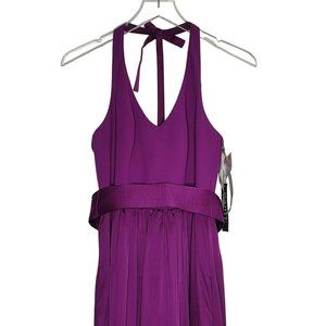 Vera Wang Halter Gown Size 2 Purple V-Neck Sash Bridesmaid Formal VW360214