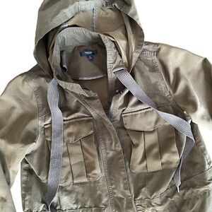 Simply Vera Wang hooded utility Jacket in size large. The jacket is pre-owned and there are no stains or rips. Minor wear/pilling.