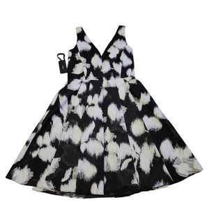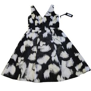 V-neckline, nipped waist, jacquard print, fitted bodice, full pleated skirt, completely lined and backside hidden zipper