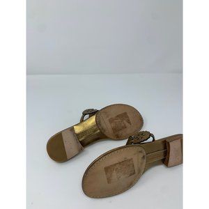 Bronze colored sandals, Leather upper and Leather Lining. Punch design detail, pre-owned, EUC.