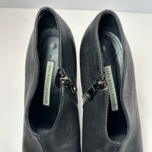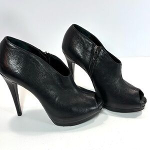Vera Wang Lavender Black Heeled Booties Women Sz 6.5- Quiet Luxury Vtg Peep Toe