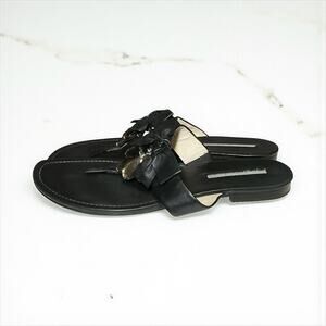 Vera Wang Lavender Black Leather Bow Jeweled Sandals Size 9 M