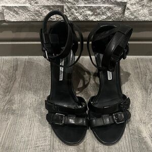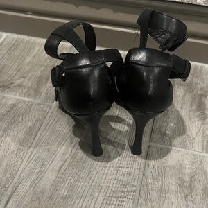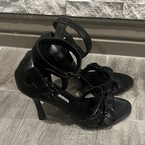 Vera Wang Lavender black heels with multiple straps. Great for your next formal or semi formal event. Versatile, will go with your party dress or jeans . Heel height 4 in