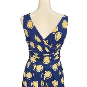 Vera Wang Lavender Label Polka Dot Wrap Dress V Neck Sleeveless Navy Gold Size 6