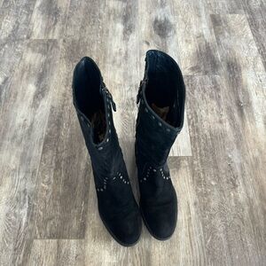 Vera Wang Lavender Label Suede Studded Almond Toe Calf Length Block Heel Boots