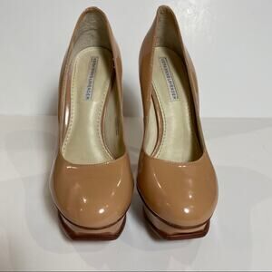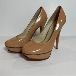 Beautiful Vera Wang nude patent leather pump 5 inch heel with platform. The color is more like photo # 1 stock photo.