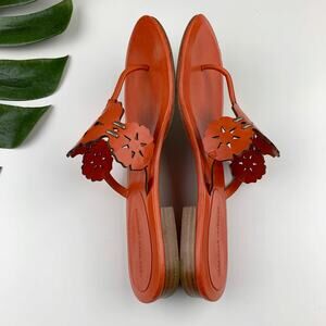 Vera Wang Lavender Sandals Orange Leather Thong Laser Cut Women’s 8.5