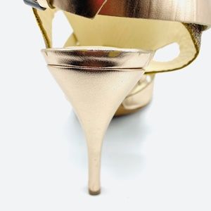 VWL Garmin Glitter Rose Gold sandal in Pre-loved good condition. Slingback strap with an elastic insert. The glittering accents add festive charm to a strappy sandal crafted from gold leather. This is a GOOD-LOOKING SHOE!!! There are signs of wear throughout including straps. Some minor scuffs at the heel. Moderate wear at the soles. 4+ inch heel. , First pic is a stock photo. All others are the actual shoe for sale. Please ask if you have questions. PRICE IS FIRM!