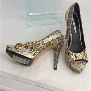 This is a beautiful pair of Vera Wang Lavender Women's 'Selima' Peep Toe Snakeskin Pumps