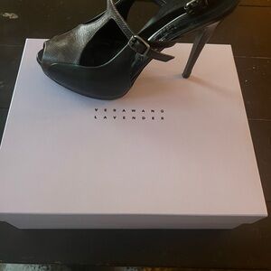 Vera Wang Lavender. Very lightly worn Women's Black and Brown Peep Toe Heels