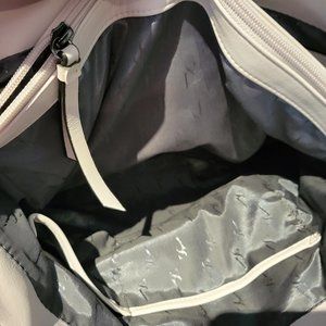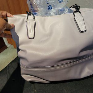 Purse is gently used. Very clean. One ink mark on the back. Grey and lavender. Soft vegan leather and lots of space.