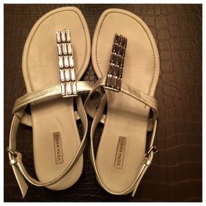 Vera Wang Light Grey Crystal Embellished Sandals