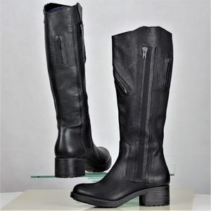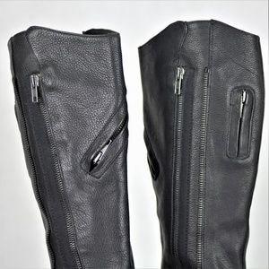 Vera Wang Lavender Label Evan Riding New WOB/T, Women Size 5.5 M US/35 EUR, Tall Knee-High Motorcycle Zip Boots. 1/2 size shows as 0/0, soft black pebbled genuine leather uppers, smooth leather lining, leather footbed, inside zipper closure, decorative zipper trim, 2.11 lbs, rounded toe, ~2” stacked block heels w/0.75" platform, rubber lug outsole provide long-lasting durability and great traction. Made in Italy. Photos are part of the descriptions, please check all pics carefully.