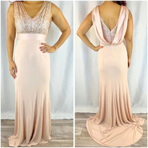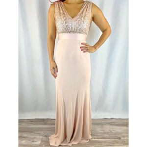 Vera Wang Pink Rose Gold Sequin Formal Gown $395