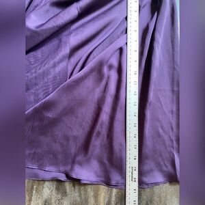 Elegant purple maxi dress by Vera Wang. Features a sleeveless design with a fitted waist. Perfect for formal occasions.