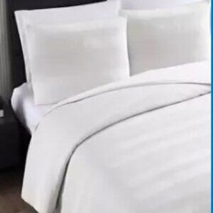Vera Wang Queen White Waffle Stripe 3-Piece Cotton Duvet Cover Sham Set New