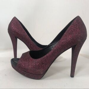 Vera Wang Red Metallic Glitter Open-Toe Heels