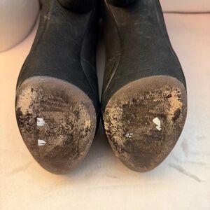 Features an edgy leather bootie, with a peep toe and a gorgeous bow in the back, plus a nice platform for stability. Very comfortable. Has stretch front. In great condition - barely used because they were a bit too large for me! Lots of life left!