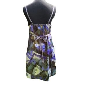 Vera Wang Satin Blue Watercolor Print Chemise Slip Sleepwear Dress Size Small