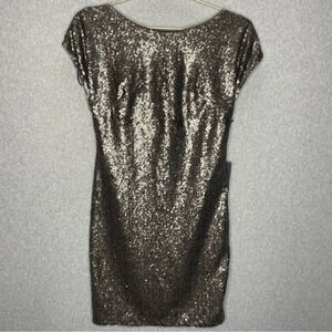Vera Wang Sequin Sheath Cowl Back Pewter Holiday Party Dress