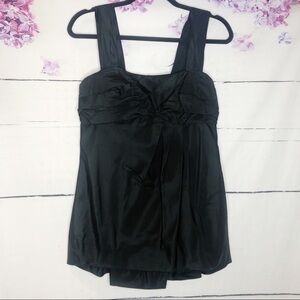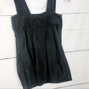 Beautiful silk tank with accented chest and flares out at bustline. Very flattering