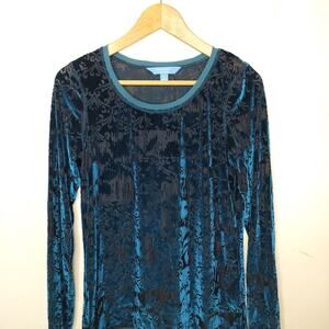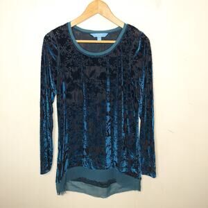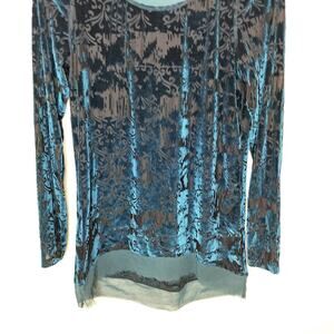 Simply Vera Wang blue velvet burnout long sleeve shirt. Size S. Poly, nylon, spandex. (22903)