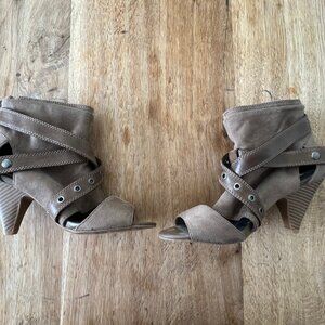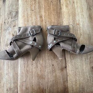 Vera Wang Simply Vera Suede Brown Tan Open Toe Bootie Shoes