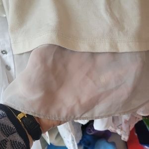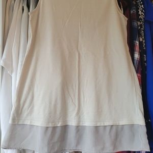Neutral Vera Wang tank top with silk trim at bottom. Cream colored with a light silver silk bottom. Very comfortable and adds class to an outfit.