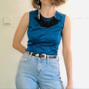 Beautiful top and skirt set from Vera Wang, an internationally known designer brand famous for her gowns and couture fashion. The top has a net mesh and beading in the front with a zipper down the back. A bit of wear on the mesh in the front. It has a band of the same fabric at the bottom of the top. Pit to pit: 15.75 . Skirt length: 20.75. The skirt has a zipper down the side with to slits/vent in the front. Can be dressed up or down! A classic outfit you can wear for years.