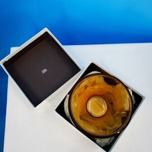 This is not new but is in original box, Vera Wang x Wedgwood amber bowl, please see photos for measurements 3" takl x 5" acrosstop, bowl is in beautiful condition but box has some marks