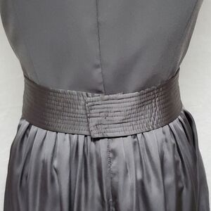 Vera Wang White Charcoal Satin Crepe One-Shoulder Belted Side Slit Formal Gown 8