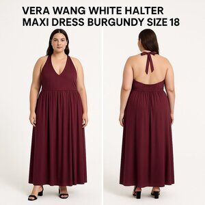 Vera Wang White dress, burgundy halter gown, plus size evening dress, formal maxi dress, wedding guest dress, wine red gown, empire waist formal dress, NWT Vera Wang, size 18 maxi dress, halter neck evening gown, luxury event dress.