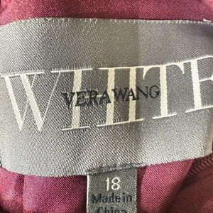 This Vera Wang White Collection maxi dress is a sophisticated statement piece perfect for weddings, formal occasions, or evening wear. The gown is crafted in a deep burgundy red tone with the following design details: