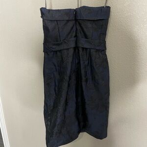 Vera Wang White Navy Black Bow Bodice Strapless Form Dress 6