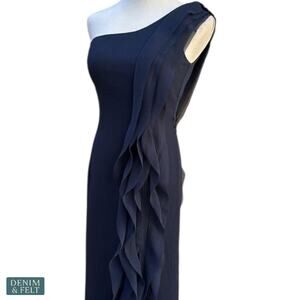 Turn heads in this sophisticated Vera Wang White gown. The one-shoulder ruffle detail, floor-length silhouette, and thigh-high slit make it perfect for weddings, galas, or elegant evening events. ✨