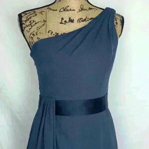 Vera Wang White Womens Short Dress Navy Blue One Shoulder Belted