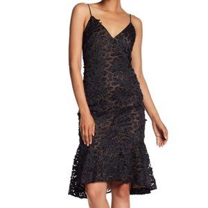 Classic, beautiful floral applique cocktail dress with a flattering drop waist and flutter skirt, retail for $249.