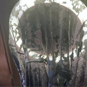 Beautiful Black Sheer and Velour Women’s Dressy or Business Casual Top in XL. Has a nice draping effect and elegant look. The last picture is the top over my ring lamp just to show how sheer and see through the top is.