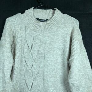 Vera Wang Womens Sweater Brown Cable Knit Mock Neck Pullover Soft Stretch M