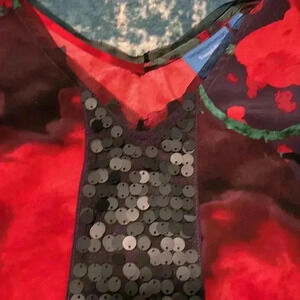 Vera Wang abstract sequin mesh hi-low pocket dress XS
