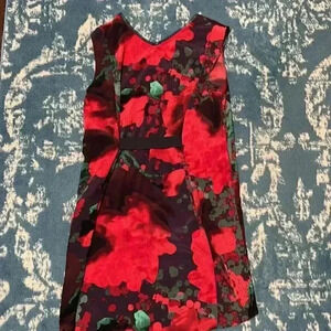 This is a darling silky dress. There are so many details to pay attention to around the neck line, down the front and the elastic in the back. Dress even has pockets!. The chest is 36 inches. The waist is 32 inches. The length in the front is 29 inches. The length in the back is 33 inches. The only flaw is shown in the last photo. That is at the very bottom of the front of the dress.
